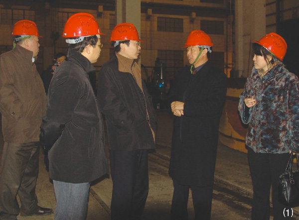 江蘇鵬飛集團(tuán)總裁王家安的陪同下,中國建筑材料聯(lián)合會(huì)陳國慶副會(huì)長一行參觀公司生產(chǎn)基地