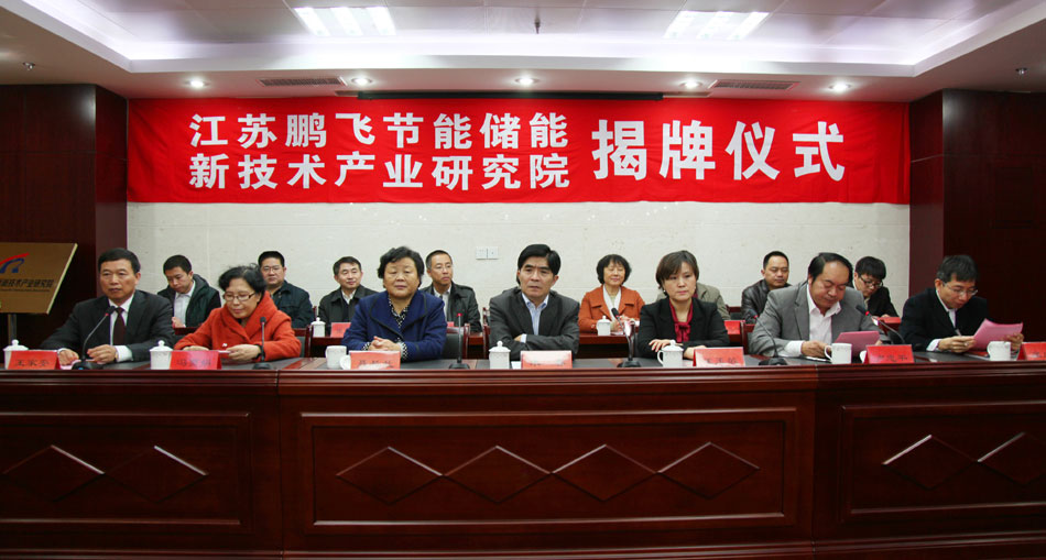 2014年11月29日上午10時(shí),江蘇鵬飛節(jié)能儲(chǔ)能新技術(shù)產(chǎn)業(yè)研究院正式揭牌成立?h政協(xié)主席朱春、中國(guó)建材機(jī)械工業(yè)協(xié)會(huì)常務(wù)副會(huì)長(zhǎng)王玉敏、江蘇省建材行業(yè)協(xié)會(huì)會(huì)長(zhǎng)聶長(zhǎng)蘭,中科院、南京工業(yè)大學(xué)、上海交大、安徽理工、鹽城工專等高校院所的專家教授,縣科技局、人社局等相關(guān)部門負(fù)責(zé)人及部分客商,150多名代表參加了揭牌儀式。副縣長(zhǎng)盧忠平主持了揭牌儀式。