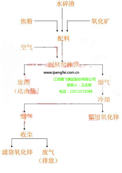 一、首先將礦粉與煤、水按一定比例配制后送往制球機,制成球輸送到窯尾,通過氧化鋅回轉窯的不斷轉動進入窯尾的配料不停地進入烘干和預熱段(12m左右,650-700度)然后進入中溫段(18m左右,700-850度)最后進入高溫段(18m左右,850-1100度,907度是Zn的沸點)。窯子不停轉動,在高溫段翻動料面上產(chǎn)生很大很濃的黃色火焰,即鋅蒸汽和各種金屬蒸汽,隨著窯內(nèi)的強大的引風和鼓風 )逆向進入中溫段、預熱段、烘干段,同時與窯內(nèi)的剩余氧氣進行反應產(chǎn)生ZnO粉塵,但由于風量和風速(3-4m/s)較快,一下到達氧化沉降室.